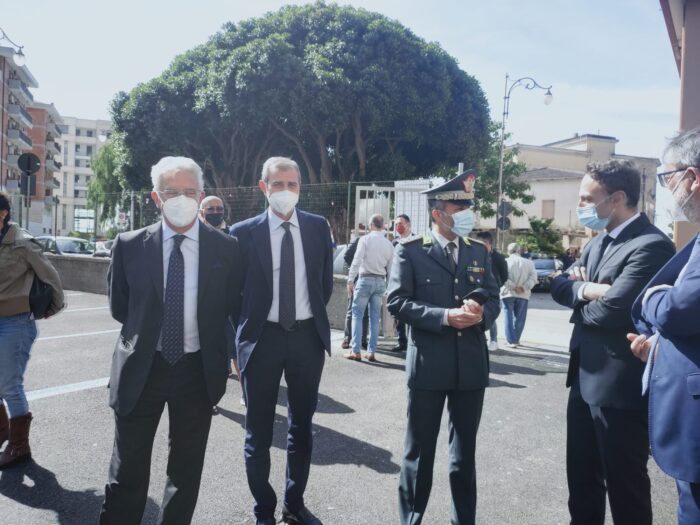 L’inaugurazione del parcheggio questa mattina dopo intesa raggiunta tra il Comune di Salerno e la Guardia di Finanza di Salerno, sostenuta dall’azione del parlamentare Piero De Luca, pensata come una risposta concreta alle numerose istanze di commercianti e titolari di locali pubblici del centro storico, fortemente penalizzati dalla carenza di spazi per la sosta in pieno centro città. Un segnale importante in questo momento dove ci si avvia alla ripresa delle attività coma hanno tenuto a sottolineare questa mattina in occasione dell’inaugurazione il sindaco di Salerno Vincenzo Napoli, l’assessore alla Mobilità Mimmo De Maio ed il Comandante Provinciale della Guardia di Finanza, il Generale di Brigata Danilo Petrucelli.