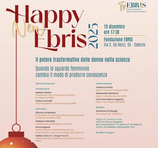 Torna l’appuntamento annuale di Happy New EBRIS, l’incontro promosso dalla Fondazione EBRIS – European Biomedical Research Institute of Salerno: un’occasione di riflessione, confronto e augurio condiviso che unisce comunità scientifica, mondo culturale e territorio.