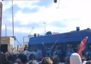 Ci sarebbe un fermo di polizia (e anche diversi contusi) dopo le cariche, gli scontri e i lacrimogeni lanciati davanti al porto di Salerno nella tarda mattinata dove è stato necessario l’intervento della celere per fermare il gruppo di manifestati che volevano entrare all’interno dello scalo al grido di