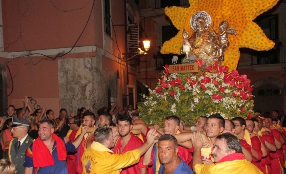 Salerno ha festeggiato il suo santo protettore, San Matteo ma questa volta le istituzioni non sono state protagoniste per contrasti con la Curia. Assente, per la prima volta, il gonfalone del Comune e quello della Provincia; inoltre, nessun rappresentante comunale indossava la fascia tricolore. Il sindaco Vincenzo Napoli non ha partecipato alla processione così come non era presente l’ex primo cittadino, attuale presidente della Regione Campania, Vincenzo De Luca, il quale qualche settimana fa aveva assicurato la sua presenza “soggetta solo ad ulteriori impegni istituzionali”. Uno “strappo gravissimo, un atto di arroganza”, secondo alcuni consiglieri di opposizione, quello che si è registrato in queste ultime settimane tra il Comune e la Curia di Salerno. In testa alla processione l’arcivescovo di Salerno, monsignor Luigi Moretti, che negli ultimi anni ha cercato di disciplinare diversamente la processione con la statua di San Matteo e degli altri santi patroni della città di Salerno.