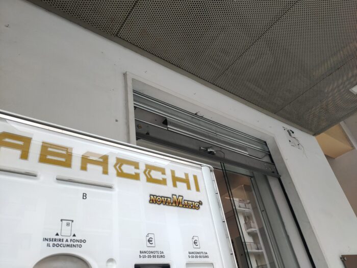 Ben evidente il taglio alla saracinesca che i ladri hanno compiuto con l’ausilio di un flex, operazione che non gli ha consentito l’ingresso nell’attività commerciale ma che è stata ripresa dalle telecamere di videosorveglianza, immagini ora al vaglio dei carabinieri.