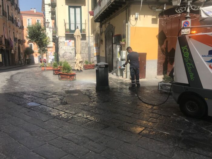 Salerno Pulita, infatti, si sta dotando di mezzi meccanici adatti per operare nelle strade strette e nei vicoli del centro storico, rendendo così più agevole il lavoro dei propri addetti e più efficace il servizio di spazzamento e di lavaggio del suolo pubblico. La nuova mini lavastrade sarà affiancata a breve da una mini spazzatrice e i due mezzi saranno utilizzati contemporaneamente: la spazzatrice precederà la lavastrade.