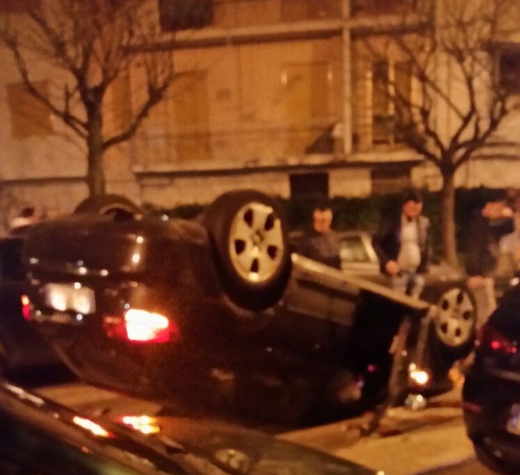 percorreva la strada, ha urtato un’altra auto in sosta ribaltandosi improvvisamente. Nell’incidente è rimasto lievemente ferito il conducente della vettura.