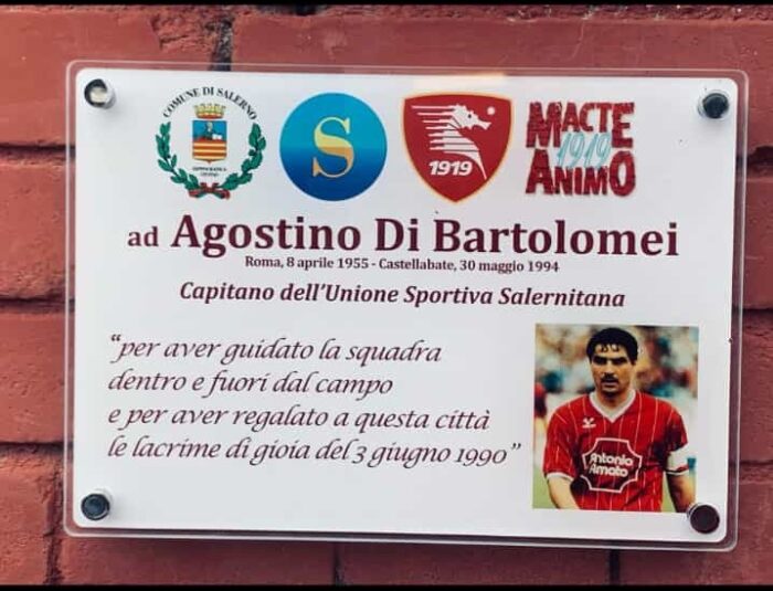 Ieri al Vestuti sono state scoperte le targhe in memoria di Mario Saracino ed Agostino Di Bartolomei. Erano presenti i figli dell’ex calciatore e tecnico granata, mentre il figlio dell’ex capitano di Roma e Salernitana, Luca, ha affidato un messaggio che è stato letto dal consigliere comunale, Pino D’Andrea, con cui ha ringraziato la città ed i tifosi per l’affetto e il sostegno sempre dimostrati nei confronti della sua famiglia. Il sindaco Napoli e Rino Avella, presidente della Commissione Sport, hanno anche ribadito l’impegno per ottenere dalla Regione i fondi necessari per la ristrutturazione del Vestuti. L’ad della Salernitana, Maurizio Milan, trattenuto a Roma da impegni lavorativi, ha consegnato al team manager, Avallone, ed al responsabile della comunicazione, Lambiase, una lettera con cui ha ricordato la figura di Agostino Di Bartolomei. Presenti tanti ex calciatori granata, alcuni dei quali ieri mattina si sono recati al cimitero di Castellabate per poter rendere omaggio all’ex capitano. A trent’anni dalla morte, il ricordo di Di Bartolomei resta più che mai vivo per lo stile con cui ha interpretato la sua carriera e per la discrezione con cui ha sempre vissuto dentro e fuori dal campo. Anche gli ultras granata hanno ricordato il capitano con uno striscione: “Agostino Di Bartolomei: lasciato solo da quel calcio, divenne leggenda”. Anche il Presidente della Regione Campania ha celebrato sui social Di Bartolomei: “ Trent’anni fa, oggi, finiva in maniera drammatica la vita di Agostino Di Bartolomei, un grande calciatore e soprattutto un grande uomo. Era amato dai suoi tifosi e rispettato dagli avversari per la sua grande umanità, fatta di riservatezza, umiltà e correttezza. Un esempio per tutti. Manca tantissimo. Un abbraccio alla famiglia e a tutti i suoi cari”. Un ricordo particolarmente commosso della figura di Ago è stato quello del presidente dell’Ussi nazionale, Gianfranco Coppola, grande amico dell’ex capitano e custode di tanti aneddoti.