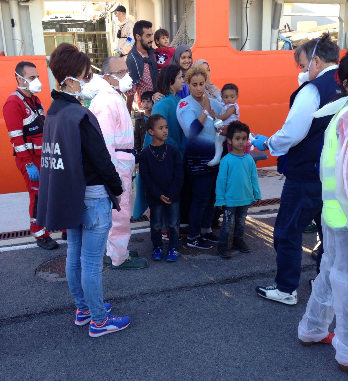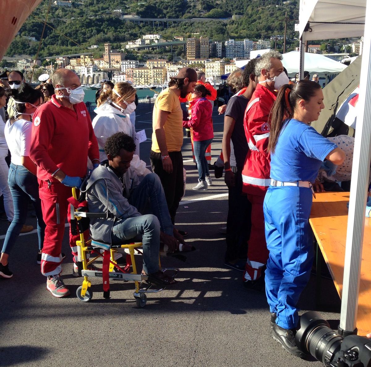Con lei nessun parente o amico. Difficile dire se qualcuno la conoscesse a bordo della Siem Pilot in quanto i tanti migranti sono stati recuperati da svariati interventi di salvataggio. Cinquecento di loro rimarranno in Campania – di cui cento in provincia di Salerno – cento andranno in Emilia Romagna, cento in Piemonte, cento in Abruzzo, cinquanta in Toscana e altrettanti in Molise, Marche, Basilicata. Quasi tutti scalzi, affamati e senza nessun oggetto che gli potesse ricordare la loro terra. Qualche sorriso, inconsapevole, arriva solo dai bambini che mandano baci e salutano i volontari, tenendo stretto un pupazzo di peluche o un album da colorare. Al momento sono stati segnalati solo alcuni casi di scabbia, ma nessuna emergenza sanitaria rilevante. 806 gli uomini presenti a bordo, 47 donne e 133 minori di cui moltissimi non accompagnati provenienti da Eritrea, Costa d’Avorio, Pakistan, Marocco, Ghana, Gambia, Senegal, Tunisia, Siria, Etiopia, Sudan, Nigeria, Bangladesh, Guinea, Libia, Mali. “La macchina dell’accoglienza – spiega il prefetto Salvatore Malfi – è ormai collaudata. Garantiamo contemporaneamente accoglienza e sicurezza. È necessaria una distribuzione quanto più equa possibile per consentire a tutti i nostri concittadini di vivere con serenità questo fenomeno che ormai è strutturale e che continuerà nel tempo”. A salire a bordo della nave, anche i magistrati per verificare – come ha aggiunto il comandante della capitaneria di Porto, Gaetano Angora – “l’aspetto investigativo per l’eventuale individuazione di scafisti a bordo”. Ci sarebbero alcune persone sotto osservazione.