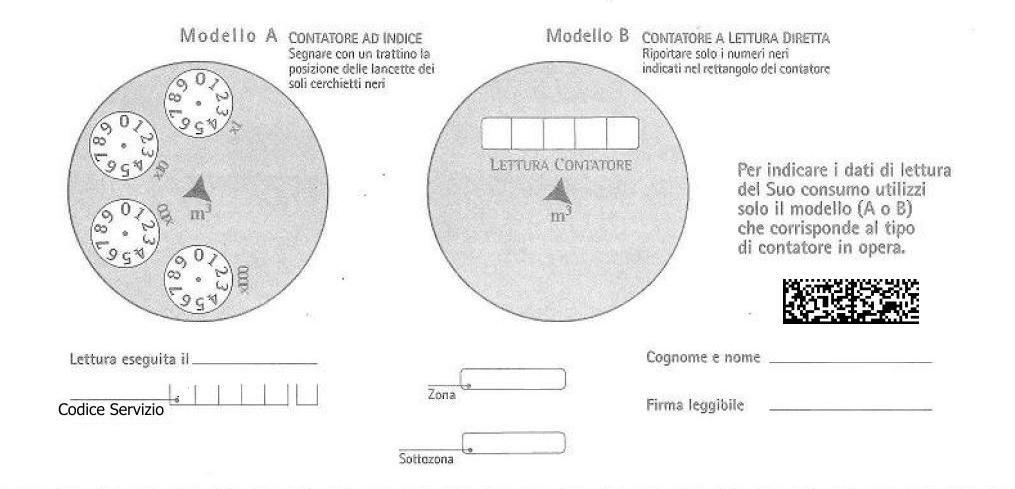 Memo H2O inviando un sms al n° 342.4112609, digitando il cod. servizio, inserendo uno spazio e a seguire la lettura del contatore;