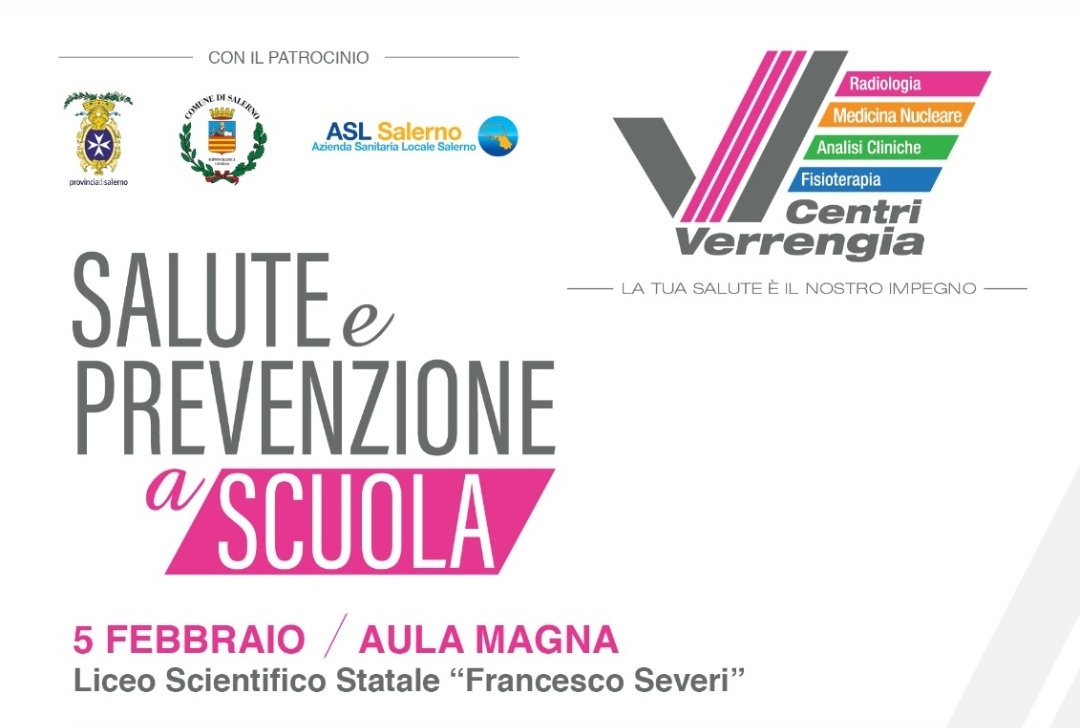 Mercoledì 5 febbraio l’Aula Magna del Liceo Scientifico Severi di Salerno ospiterà la seconda tappa di “Salute e Prevenzione a scuola”, il format promosso dai Centri Verrengia