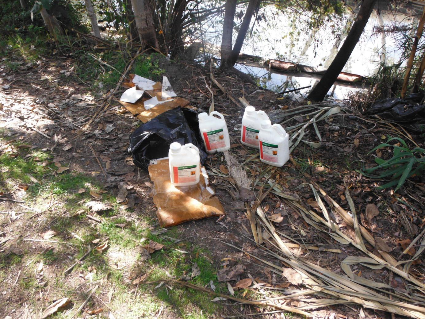 I militari della Stazione Carabinieri Forestale di Sarno, a seguito di segnalazione della Centrale Operativa 112, coadiuvati da quelli della Stazione Carabinieri di San Valentino Torio e dal personale del Comando di Polizia Municipale, hanno scoperto alla località “Ponte San Valentino” in agro del comune di San Valentino Torio, ben occultato nell’alveo del fiume Sarno, un deposito di taniche della capacità di circa cinque litri ciascuna, avvolte in teli di plastica, in cui era presumibilmente contenuto liquido insetticida del tipo usato in agricoltura.