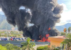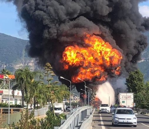 Un’alta nube nera si è alzata dalla zona, visibile in diversi comuni circostanti.