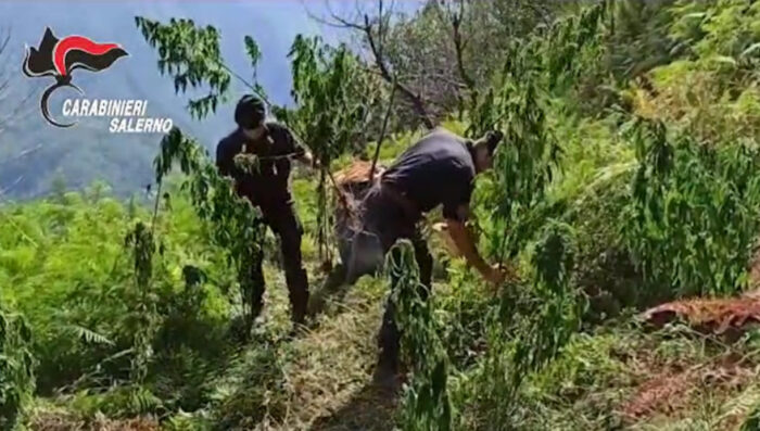 I Carabinieri della Sezione Operativa del N.O.R.M. del Reparto Territoriale di Nocera Inferiore con la collaborazione del 7° Nucleo Elicotteri di Pontecagnano hanno individuato e sequestrato ad ignoti cinque terrazzamenti, dotati di sistema di irrigazione e diserbante, utilizzati per la coltivazione di marijuana. In particolare, i Carabinieri all’esito dei controlli nell’area boschiva dei Monti Lattari hanno rinvenuto 87 piante di sostanza stupefacente già di grandi dimensioni. Le operazioni effettuate rientrano nell’ambito dei controlli finalizzati al contrasto della produzione e dello spaccio di stupefacenti nel territorio dell’Agro Nocerino – Sarnese.