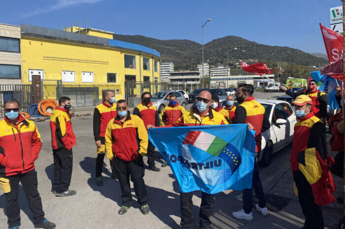 SCIOPERO DEI DIPENDENTI DELLE MERCI LOGISTICA: PRESIDIO A SALERNO DAVANTI ALLA DHL –