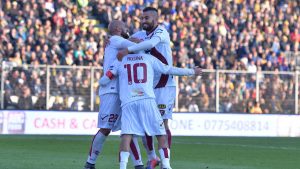 sul secondo palo e con un colpo di testa batte Bardi. Per il fantasista calabrese è il quarto centro stagionale. Il pareggio arriva nove minuti più tardi. Calcio a giro di Soddimo dalla bandierina, complice una papera di Terracciano, la palla finisce direttamente in rete. Nella ripresa i granata ritornano in vantaggio. Scocca il 68′ e con un solito cross dalla sinistra di Vitale,