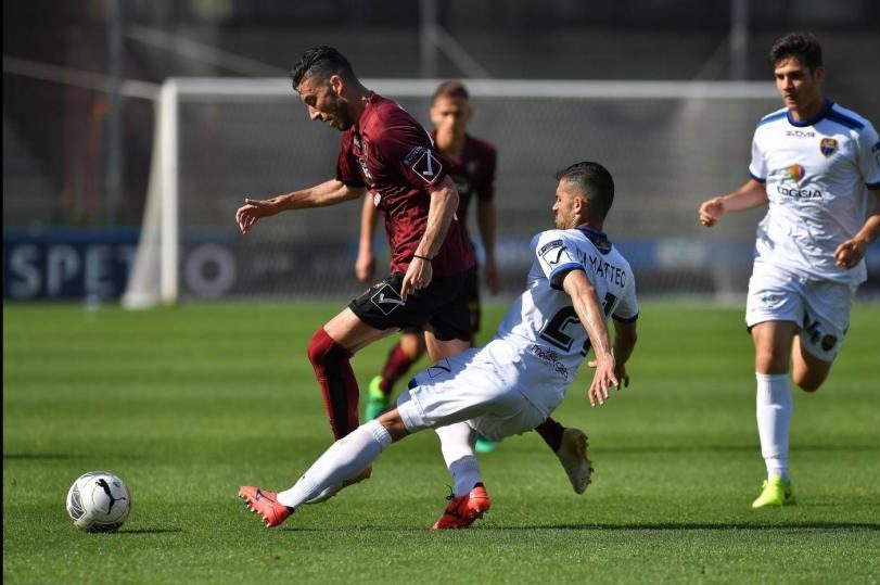 pallone in rete. Nella ripresa Bollini mescola le carte e dopo dieci minuti inserisce Donnarumma al posto di Odjer. Non passano nemmeno sessanta secondi ed i granata raggiungono il pari. Il neo entrato Donnarumma serve Rosina che, dopo un primo tiro ribattuto della difesa pontina, di destro batte Pinsoglio. La Salernitana si butta a capofitto per trovare il secondo