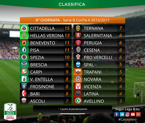 Il recupero della 2^ giornata tra Ascoli e Cesena, rinviato per il terremoto nelle Marche, termina a reti inviolate. Con questo pareggio in classifica l’Ascoli tocca quota 7 punti, mentre il Cesena sale a 6 punti. Questa la classifica aggiornata: