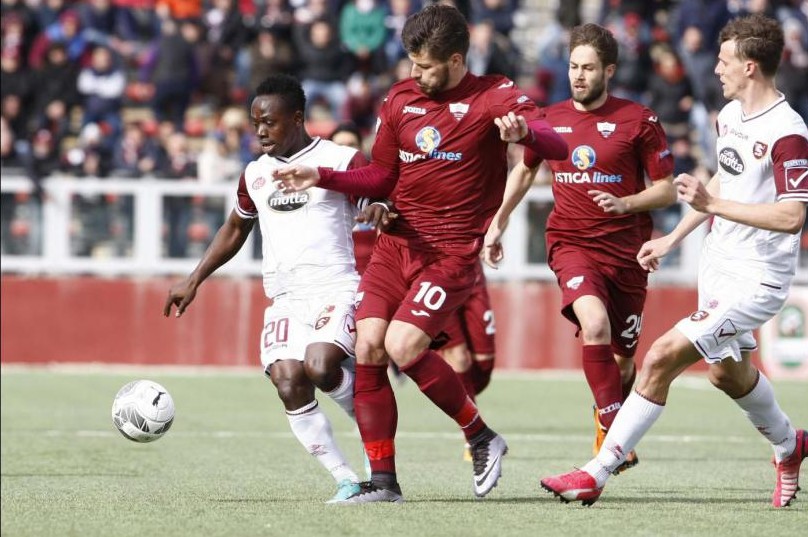 dell’erroraccio è l’estremo Strakosha che, complice anche il forte vento, si fa trovare imprepararto su un tiro diretto da calcio d’angolo. Il portiere granata riesce a spizzare la palla sulla traversa ma Pagliarulo sotto misura lo trafigge ribattendo la sfera