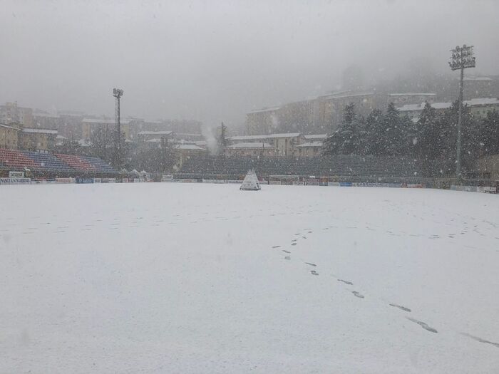 Dopo un sopralluogo sul terreno di gioco, completamente ricoperto dalla neve, l’arbitro Longo di Paola ha deciso per il rinvio del match.