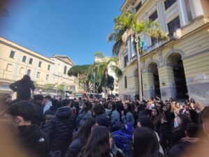 Sit-in degli studenti stamattina davanti al Liceo Torquato Tasso di Salerno per chiedere un incontro ed essere ricevuti dalla dirigente scolastica Ida Lenza e chiarire nel dettaglio la questione dei giorni della Settimana dello Studente.