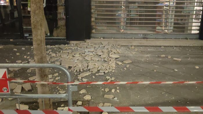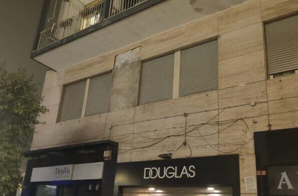 Tanta paura ma, per fortuna nessuna grave conseguenza per la caduta di un grosso lastrone di marmo, del peso di decine di chili, che si è staccato dal piano rialzato all’altezza del civici 105/107 del Corso Vittorio Emanuele, schiantandosi in corrispondenza degli ingressi dei negozi Dejavu e Douglas, interessando in parte anche altre attività confinanti.
