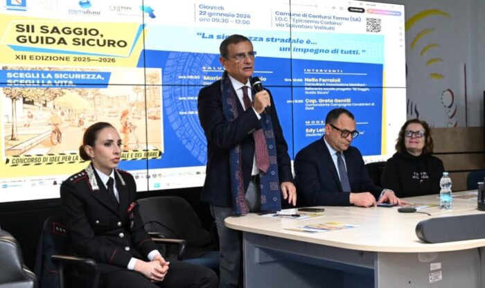 Prosegue l’itinerario di “Sii Saggio, Guida Sicuro”, il progetto sulla sicurezza stradale e del mare promosso dalla Regione Campania e attuato dall’ANCI Campania in sinergia con l’Associazione Meridiani. L’iniziativa, che si avvale della collaborazione del Ministero dell’Istruzione e del Merito (USR per la Campania), dell’Università Federico II di Napoli, delle Forze dell’Ordine e di numerosi enti e fondazioni, si conferma non solo un momento di formazione civica, ma anche un’importante opportunità di orientamento professionale per gli studenti campani.