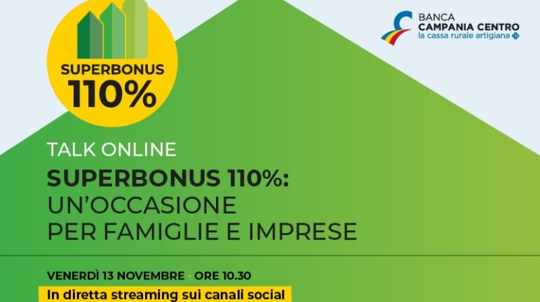 SUPERBONUS 110%: UN’OCCASIONE PER FAMIGLIE E IMPRESE. VENERDI’ TALK ON LINE DI BANCA CAMPANIA CENTRO