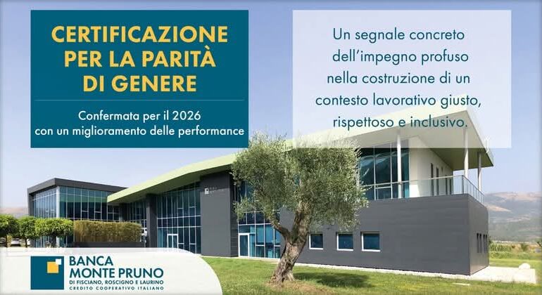 Un importante riconoscimento, che testimonia in maniera concreta l’impegno costante della Banca Monte Pruno nel promuovere politiche inclusive e nel contrastare ogni forma di disuguaglianza, è stato ufficialmente conseguito dall’istituto di credito cooperativo con validità per l’anno appena iniziato. La BCC Banca Monte Pruno, infatti, ha ottenuto, il rinnovo della Certificazione per la Parità di […]