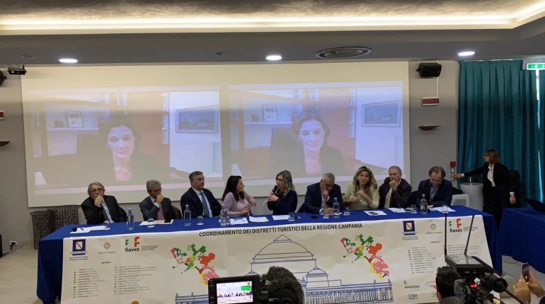 L’atteso intervento del sottosegretario al Turismo, Lorenza Buonaiuti è avvenuto via Skype. Si è chiuso stamani presso l’hotel Mediterranea di Salerno l’open forum “Le agenzie di viaggio protagoniste del mercato”. Al tavolo dei relatori il gotha del mondo del turismo a 360 gradi. Il presidente del coordinamento regionale dei distretti turistici della Campania ha parlato […]