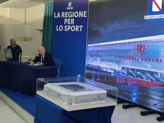 Dopo il sopralluogo al Volpe, che sarà stadio temporaneo, il presidente della Regione Campania ha ripresentato il plastico dello stadio Arechi che avrà un nuovo look. Capienza intorno ai 35mila spettatori, copertura e settori unici: queste alcune novità del progetto presentato stamattina alla presenza dei progettisti, del consorzio Energos e del direttore dell’Arus. Nel suo […]