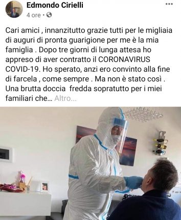 Sta molto meglio nella sua abitazione ma l’incubo che lo ha coinvolto da quando ha scoperto di essere positivo al Coronavirus ancora non è terminato. Le sue condizioni sono buone, persistono una serie di sintomi ma è fiducioso che presto passerà anche questa fase. Così il deputato di Fratelli d’Italia, Edmondo Cirielli che abbiamo sentito stamani […]