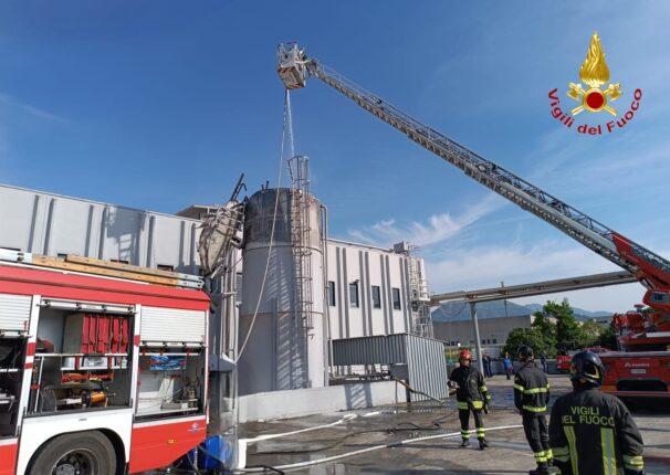 ESPLODE UN SILOS NELLA ZONA INDUSTRIALE, INTERVENGONO I VIGILI DEL FUOCO. NESSUN FERITO