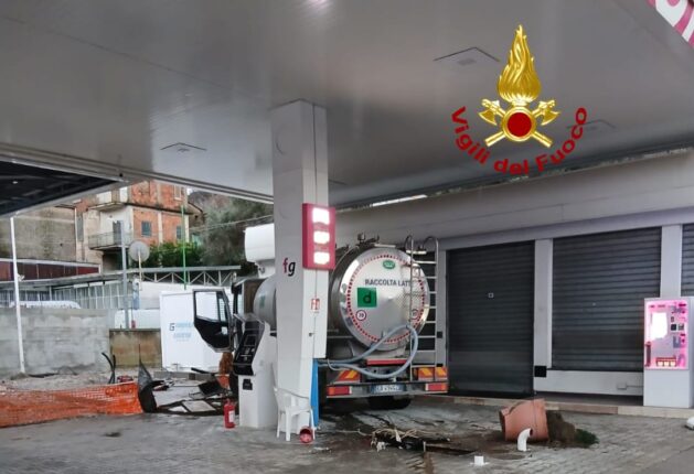 CAVA DE’ TIRRENI: AUTOCISTERNA SRADICA COLONNINA DISTRIBUTORE CARBURANTI, INTERVENTO DEI VIGILI DEL FUOCO –