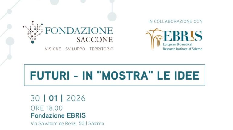 La Fondazione Saccone inaugura il proprio percorso culturale e scientifico del 2026 con “FUTURI – In mostra le idee”, l’appuntamento in programma domani venerdì 30 gennaio 2026, a partire dalle ore 18:00, presso la Fondazione EBRIS di Salerno (via Salvatore De Renzi, 50), nello storico complesso conventuale di San Nicola della Palma, oggi centro di […]