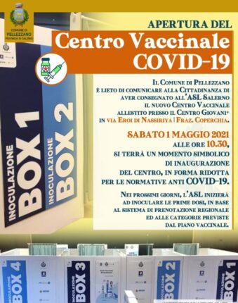 Si parte: a Pellezzano, sabato 1 Maggio, verrà inaugurato il Centro Vaccinale Covid-19, allestito presso il “Centro Giovani +” in via Eroi di Nassiriya alla frazione Coperchia. A darne notizia è il Sindaco, dott. Francesco Morra, che comunica alla Cittadinanza la consegna del PVP (Punto Vaccinale Popolazione) alla competente ASL di Salerno. Il taglio del […]