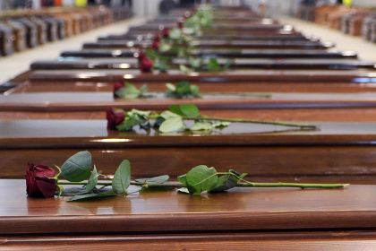 FUNERALI MIGRANTI, ROSE BIANCHE SULLE BARE DELLE 26 VITTIME