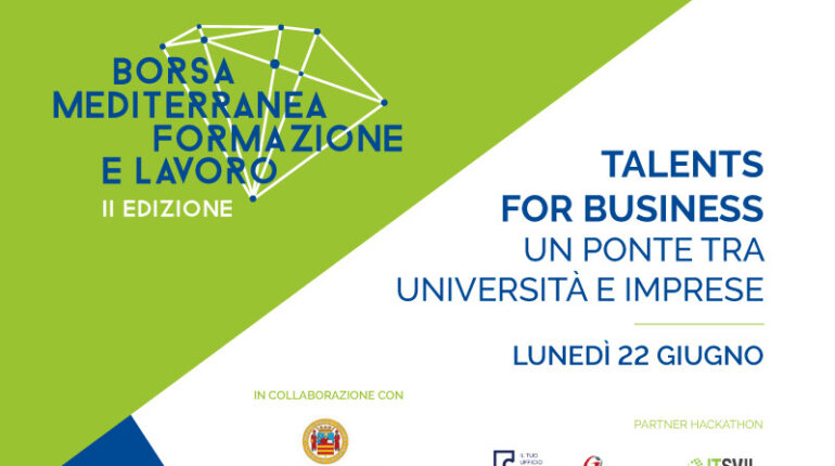 Dopo il successo della I edizione, che ha visto la partecipazione di oltre 70 giovani, studenti, laureandi e neo laureati, ritorna ma in modalità virtuale l’Hackathon “Talents for Business” della Borsa Mediterranea della Formazione e del Lavoro. In questa edizione l’hackathon, organizzato in collaborazione con l’Università degli Studi di Salerno, coinvolgerà circa 70 studenti, laureandi, […]