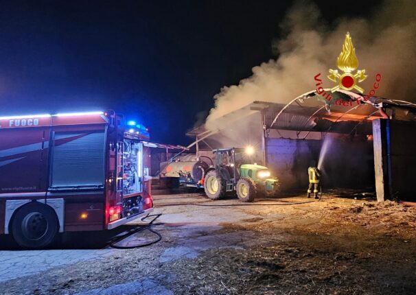INCENDIO ALL’INTERNO DI UN FIENILE, IN FUMO ROTOBALLE DI FIENO E DISTRUTTO UN TRATTORE