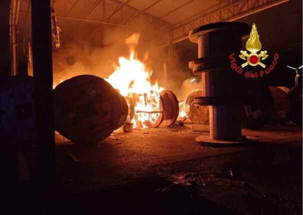 SILOS CON MATERIALE LEGNOSO VA A FUOCO, INTERVENTO DEI VIGILI DEL FUOCO