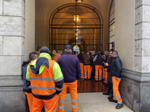 MANUTENZIONE VERDE PUBBLICO, OPERAI ISAM IN PRESIDIO SOTTO IL COMUNE DI SALERNO –