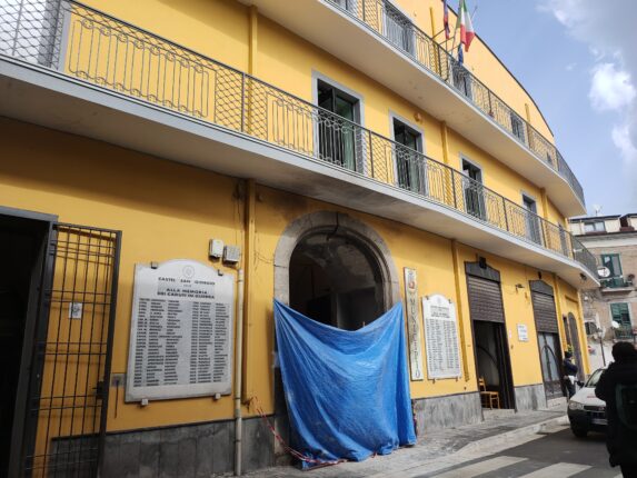 C’è un telo blu da cantiere dinanzi a Palazzo di città del Comune di Castel San Giorgio con operai al lavoro per mettere in sicurezza l’ingresso ad arco ed il portone storico del Municipio danneggiati la scorsa notte dall’esplosione di un potente ordigno lanciato da un motorino in corsa. Una brutta pagina per il comune […]