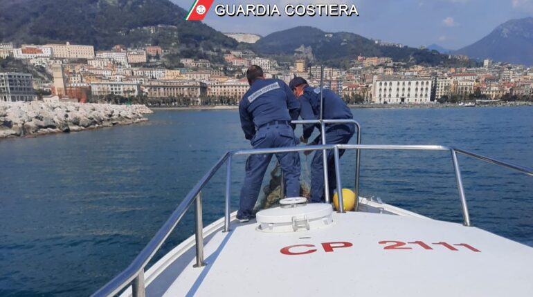 SALERNO, PESCA ILLEGALE ALL’INGRESSO DEL PORTICCIOLO DI SANTA TERESA. LA GUARDIA COSTIERA SEQUESTRA 100 METRI DI RETE