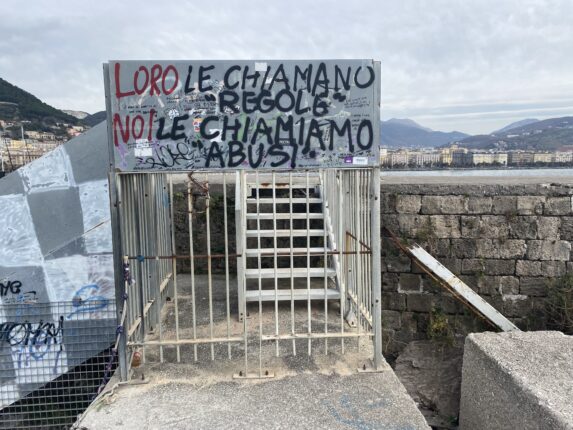 Mentre sta per essere ultimato sul molo Manfredi l’intervento di allungamento del braccio che accoglie e protegge le navi in arrivo nello scalo commerciale di Salerno, resta irrisolto il nodo della fruizione abusiva del molo come solarium. Tra degrado ed interventi di adeguamento abusivi dei sassi frangiglutto, la zona nonostante un cartello che ne vieta […]