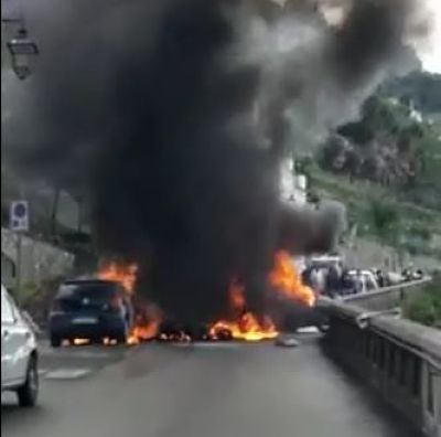 Incidente stradale all’alba di stamane a Praiano. Il conducente di uno scooter, dopo aver perso il controllo del mezzo, è finito contro due auto in sosta lungo la strada interna che si ricongiunge con la statale 163 Amalfitana. Nell’impatto il mezzo ha preso fuoco con le fiamme che hanno coinvolto anche le altre due auto. […]