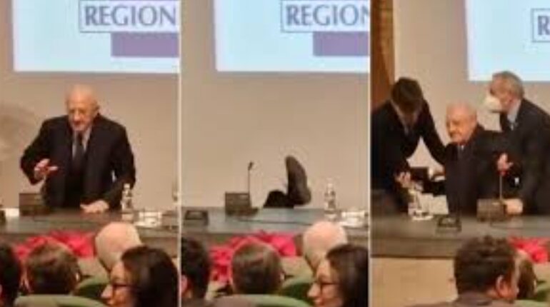 “Tutto bene, vi ho fatto assistere a un doppio salto mortale carpiato, ma come vedete godiamo di ottima salute”.Così, stamani, dopo la caduta dalla sedia di ieri il presidente della Regione Campania, Vincenzo De Luca ha commentato scherzando con i cronisti, a margine della conferenza stampa di fine anno, la sua caduta divenuta virale durante […]