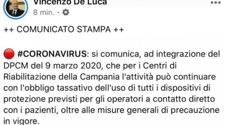 “Spiace dover rilevare che in regione i funzionari che dovrebbero aiutare il Presidente ad affrontare il momento di crisi per l’emergenza COVID 19 – afferma il Segretario Generale della CISL FP di Salerno Pietro Antonacchio – stanno sottovalutando il problema e il rischio biologico per la salute dei lavoratori quotidianamente impegnati nei servizi riabilitativi e […]
