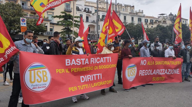 Basta ricatti per il il permesso di soggiorno, diritti per tutti i lavoratori, no alla sanatoria truffa, regolarizzazione subito. E’ questa la voce dei migranti racchiusa negli striscioni che questa mattina hanno portato in piazza Amendola a Salerno. Una nutrita presenza di lavoratori migranti con i rappresentanti del sindacato Usb ha dato spazio alla protesta […]
