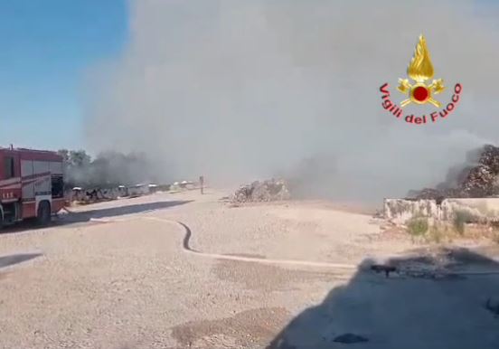 INCENDIO ECOBALLE A PERSANO, CONTINUANO LE OPERAZIONI PER DOMARE IL ROGO