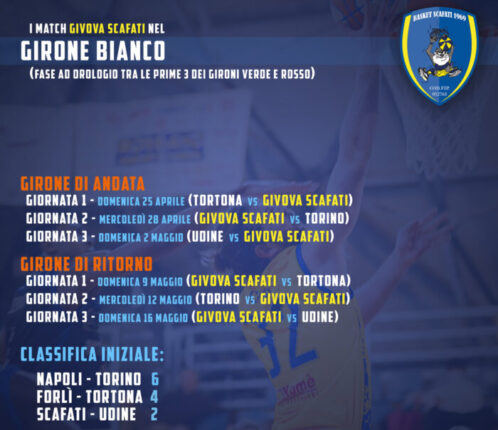 FASE A OROLOGIO BASKET A2, GIVOVA SCAFATI INSERITA NEL GIRONE CON TORTONA, TORINO E UDINE