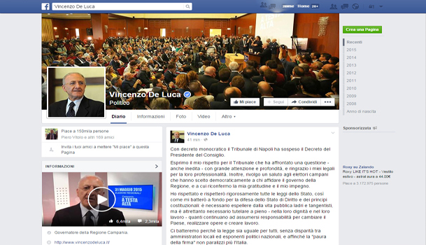 ACCOGLIMENTO RICORSO: POST DI DE LUCA SU FACEBOOK