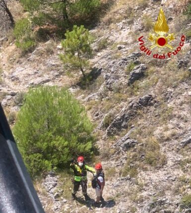SI INFORTUNA MENTRE PERCORRE UN SENTIERO, 20ENNE RECUPERATO DAI VIGILI DEL FUOCO