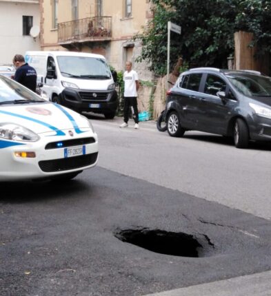 VIA MARINO PAGLIA, SI APRE UNA VORAGINE –