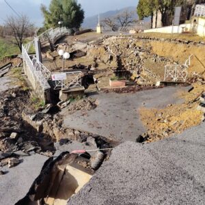 Fortunatamente non si registrano feriti né danni alle persone. La criticità era stata segnalata già nella mattinata di ieri. In via precauzionale, le autorità comunali avevano disposto la chiusura al traffico del tratto interessato e invitato la popolazione a non avvicinarsi all’area, in attesa di ulteriori verifiche tecniche. Il crollo definitivo si è verificato in serata, con il collasso della carreggiata lungo il fronte franoso.